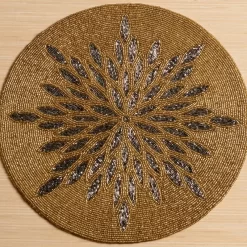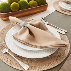 Striped White And Natural Banana Leaf Wicker Round Placemats, Set Of 4