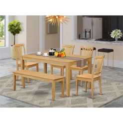 East West Furniture Capri 6-piece Traditional Wood Dining Set With Bench In Oak