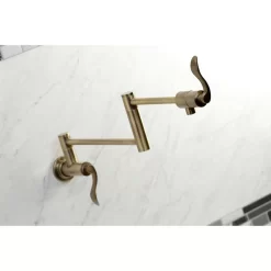 Kingston Brass KS4103DFL NuWave Wall Mount Pot Filler, Antique Brass