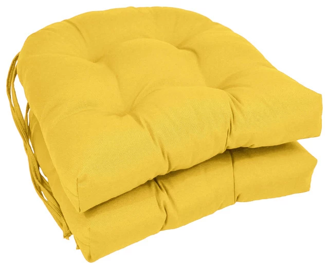 16″ Solid Twill U-shaped Tufted Chair Cushions, Set Of 2, Yellow