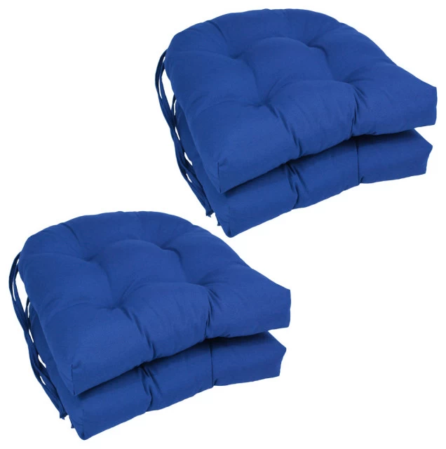 16″ Solid Twill U-shaped Tufted Chair Cushions, Set Of 4, Cobalt