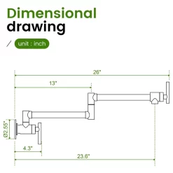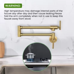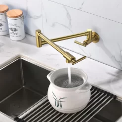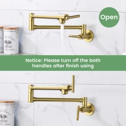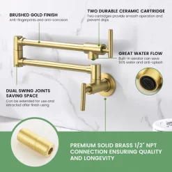 It is featured dual pivot joint allows for maximum reach and positional flexibility ensuring the 2.5 GPM spout is always positioned exactly where you need it to be. The strategic double water valve system also for initial water flow activation at the base along with convenient water flow control on the spout itself. Built using certified steel and brass the pot filler delivers reliable durability, convenient articulation and long-lasting performance.