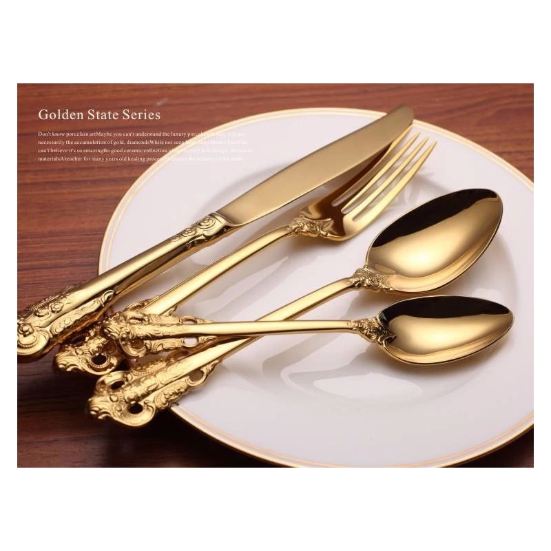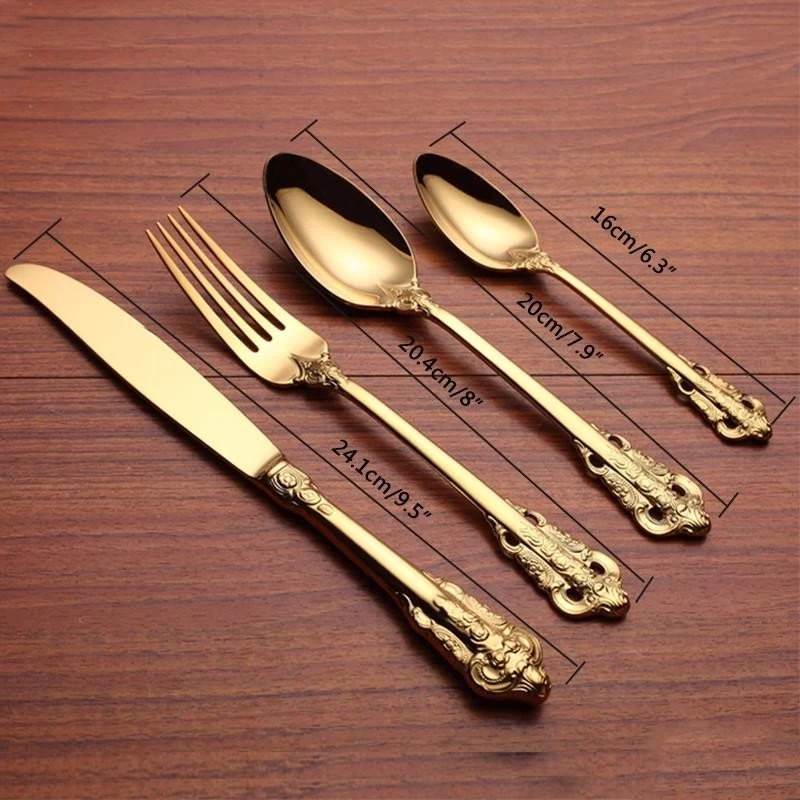 24-Piece Vintage 18K Gold Plated Stainless Steel Silverware Set, 6 Settings