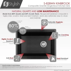 - BEAUTY AND STRENTGH: Clean lines, simple shapes and small corners define this stunning composite granite sink, which combined with the vivid colors and stone appearance offer an amazing addition to your kitchen.