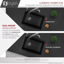- PERFECT FIT ACCESSORIES: Complement the style and functionality of your sink with our accessories, designed to perfectly fit your single bowl dual mount composite granite sink while offering great convenience. The sink includes these high-quality accessories: ST-01 Stainless steel strainer A-04 Metal colander A-914BK roll-up drying rack A-909 Bamboo cutting board.