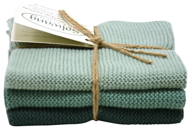 3-Piece Danish 100% Oeko-Tex Or Certified Organic Cotton Dishcloths, Organic Rustic Green Combi