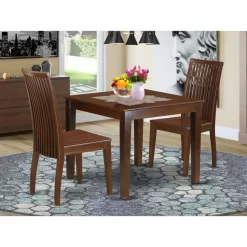 - OXIP3-MAH-W 3-Piece Dinette table set – Table and 2 wood seat dining chairs in mahogany finish