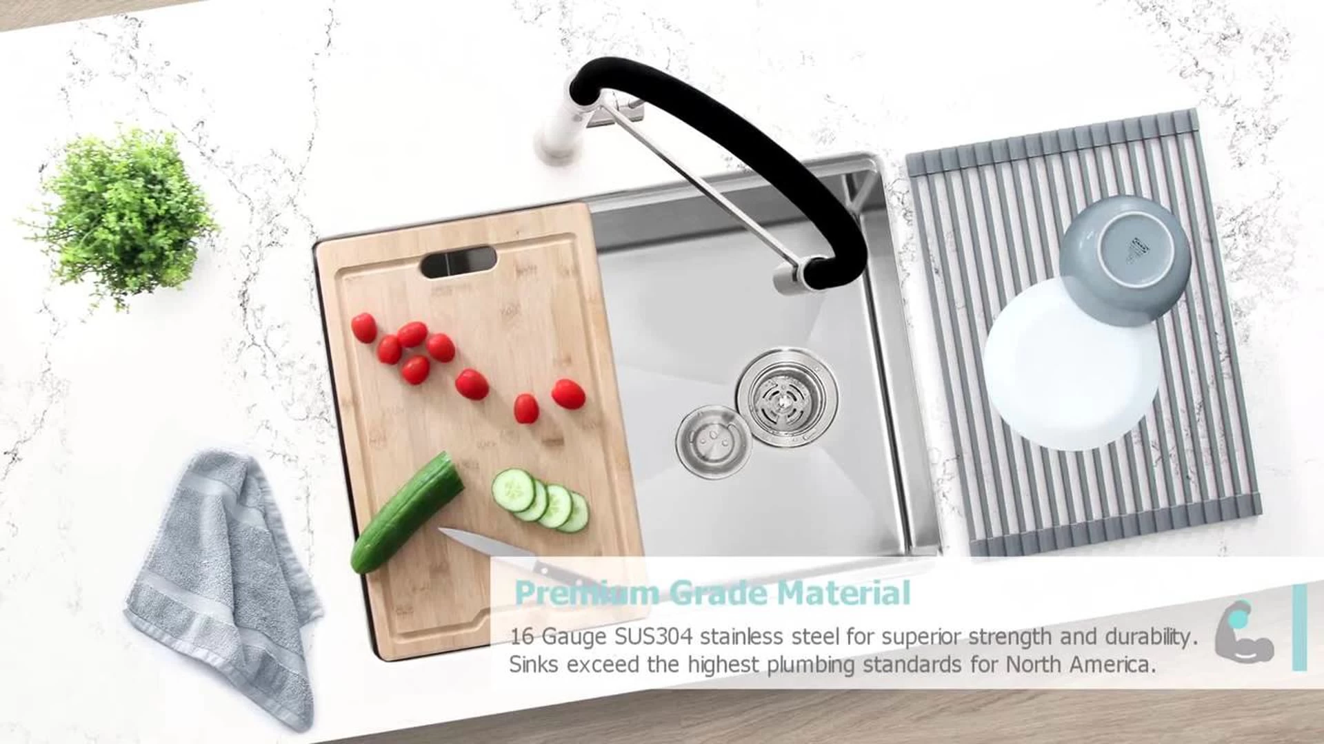 PREMIUM GRADE MATERIAL: Made of Premium 16-gauge T304 stainless steel which the thickest steel in the market with 18% chromium and 10% nickel content which provides excellent strength and hardness. This single bowl kitchen sink is extremely robust and made with scratch-resistant stainless steel. It won’t stain, tarnish or rust over time.