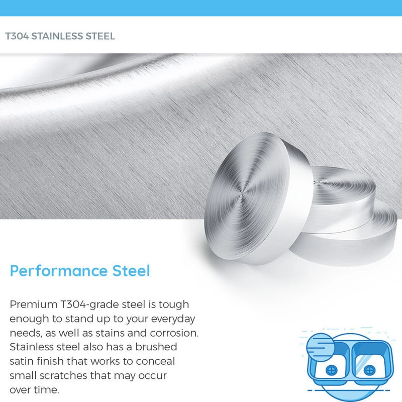 - Exceptional durability – premium, 304-grade, available in two gauges 16-gauge stainless steel or 18-gauge stainless steel