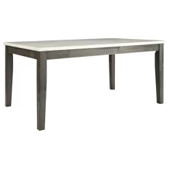 Attract attention to the center of your dining room with the Merel dining room Table. Featuring a genuine white marble top and a stunning gray oak finish wood base, this dining table is durable and stylish, complementing your contemporary home decor theme while guaranteeing to withstand the wear and tear of daily use for years to come. Warmed with a gray oak finish this sturdy table has beautifully tapered wood legs. A striking mix of natural materials this unique table will provide ample seating space for all of your guests.