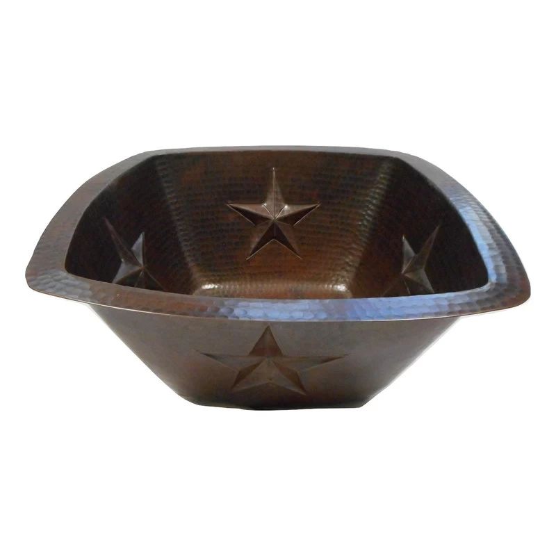 Aged Copper 15″ Square Copper Kitchen Wet Bar Sink STAR Design Drain Included