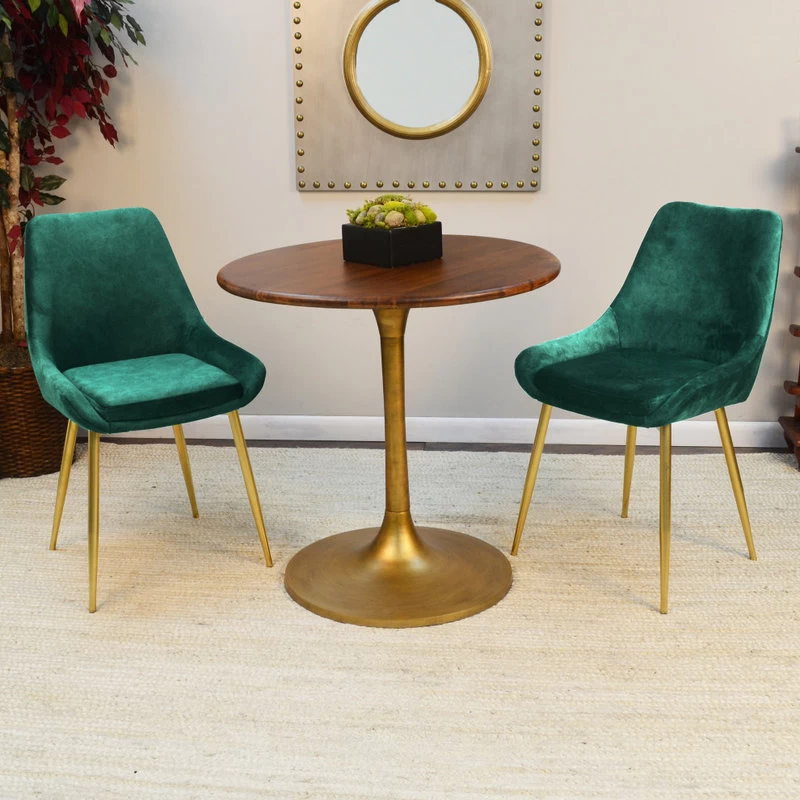 The Alden table is perfect for a cozy breakfast nook. With a classic tulip shape cast-aluminum base and a solid Elm stained mango wood top. the design of this table draws inspiration from early French and American architecture, the Alden table combines modern functionality with a rustic appeal that is as striking as it is livable.