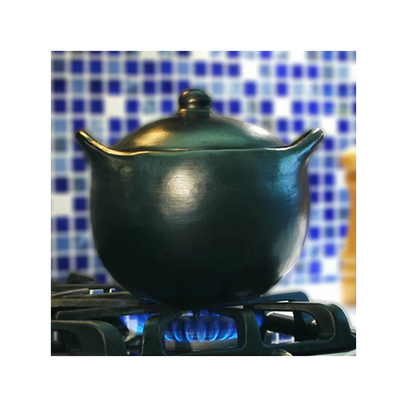 The rounded soup pot is perfect for slow cooking soups, stews, and casseroles. Length 10.8in (handles included) x Width 9.5in (from outside), Height 8.5in (with the top of the lid handle), Diameter 7.0in and Capacity 4qt (filled comfortably without overflowing). Better suited for gas ranges or open fire, it heats very evenly and retains heat for a long period. Completely natural and safe, contains no toxins or lead and the porous nature of the clay allows the slow evaporation of steam and produce food that is healthier, tastier, and moist using less fat and liquids. Will last many years with proper use and care (each piece comes with a product information sheet outlining the Uses and Care for the product). Perfect for slow cooking soups, stews, and casseroles, and serve in the table for a great presentation. Black Clay, La Chamba Cookware, is well-known and used throughout Colombia in restaurants and homes for preparing and serving traditional dishes. Its origins can be traced back at least 700 years to vases and pitchers found in pre-Columbian archaeological sites. It is still made in the traditional manner, by families in a small village on the banks of the Magdalena River in Central Colombia. Each piece is hand-made using local area clays, then hand burnished with a stone. The pieces are then fired in the village, giving them the distinctive black color and elegant look.