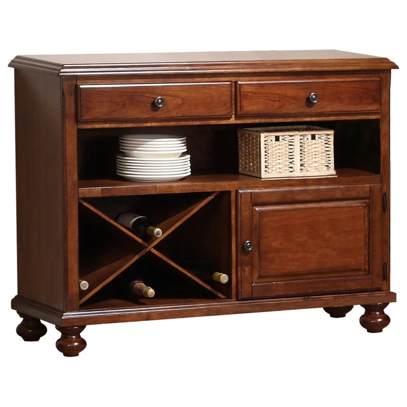Deep seated, sturdy chairs with contoured backs | Durable padded cloth seat | Factory tested to support up to 350 lbs. | CHAIR DIMENSIONS: Overall: 38″H x 21″D x 19″W | Seat: 18.5″H x 20″D x 20″W | Seat back: 22.5″H | Weight (2): 23 lbs. | You will be impressed by the solid, quality craftsmanship of the Andrews server | Two felt lined drawers on Euro glides for ease of use and removal | Drawers (2): 2.25″H x 13″D x 18.5″W | Built in multi-use wine, magazine or linen rack | Space to floor: 4″ | Aged bronze knobs | SERVER DIMENSIONS: Overall: 36.5″H x 17″D x 47.75″W | Drawers (2): 2.25″H x 13″D x 18.5″W | Cabinet: 14″H x 15″D x 22″W | Open shelf: 7.5″H x 16″D x 44.5″W | Clearance: 4″ | Weight: 119 lbs. | Care: Clean with light furniture polish, vacuum or brush seats regularly | Studio photography lighting, slight measurement and weight variances are possible, your viewing device may display colors differently than in real life. The product you receive may vary slightly from the image portrayed. Decorative items in photo not included | Simple assembly: Table: Attach legs, Server: Mount knobs only, Chairs: Front legs attach to fully assembled box construction seat, all hardware, tools and assembly instructions provided | One year warranty against manufacturer defects | Free wood samples available