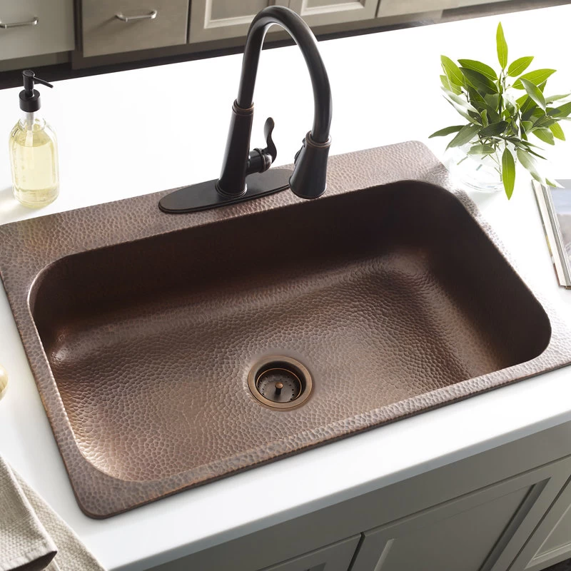 - Sinkology�s drop-in design and included hardware make the Angelico solid copper kitchen sink easy to install.