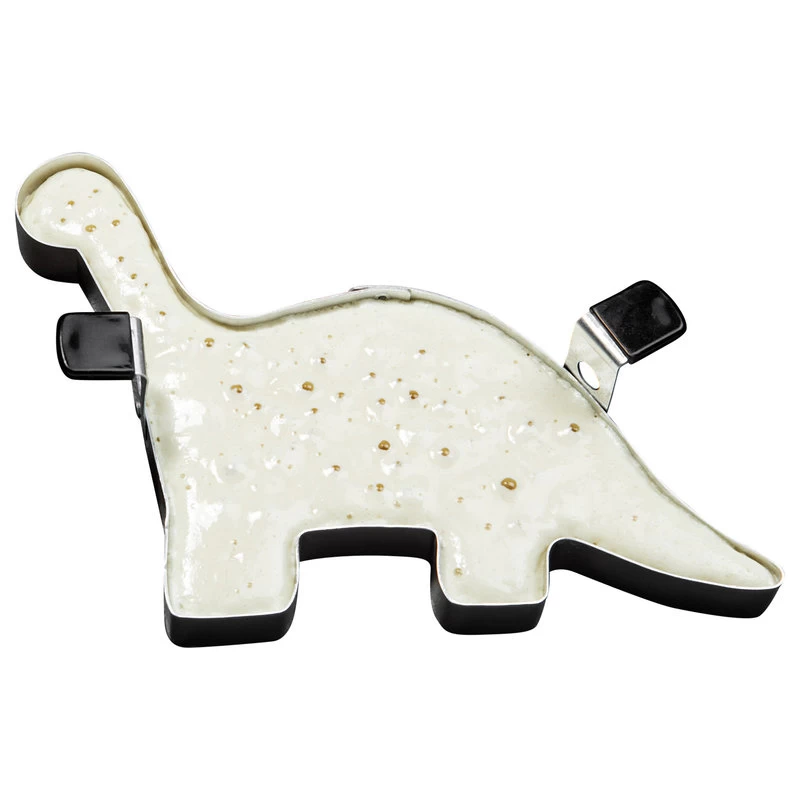 Apatosaurus Shape-Its Food Forms are manufactured from an aircraft aluminum alloy that has been specially processed to provide years of durable use without losing its shape. These forms work great for shaping any kind of shapeable food (i.e. pancakes, cakes, cookies, gelatin, ice cream, marshmallow treats, brownies and more.) Each form is easy to clean, dishwasher safe, oven safe to 350 degrees and will not rust. All Shape-Its Forms are equipped with folding handles to make storing easy.