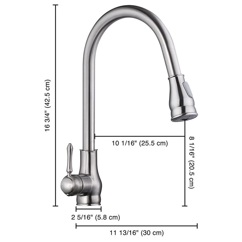 - Convenient Cleaning Kit – Aquaterior 1-hole Kitchen Faucet features pull down sprayer for easy washing, a free 14.5oz soap dispenser included in the package offers great convenience to load dish detergent or hand sanitizer