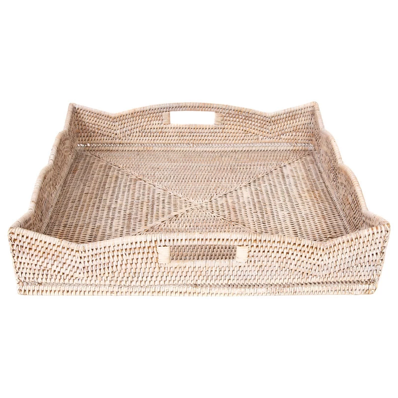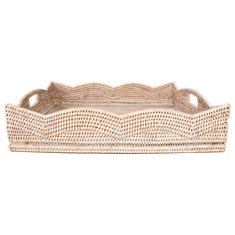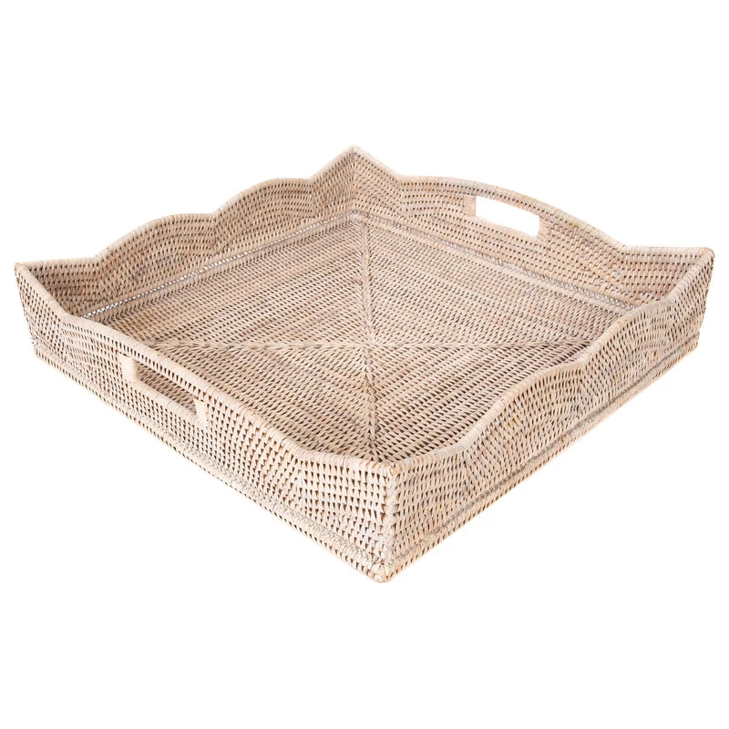 Our Scallop Collection rattan storage baskets, serving trays, and ottoman trays will instantly add a gorgeous touch to any room of your home. Made with an intricate design to provide an eye-catching and space-saving way to change up the look of any room.