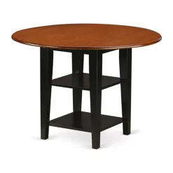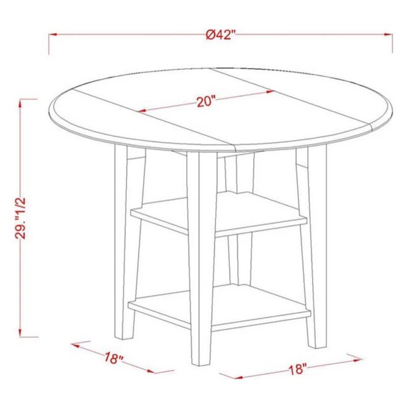 - Round dining table features two 11-inch drop leaves. Good for small kitchen