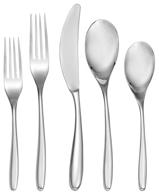 One of our most graceful and enchanting flatware collections, the Bend 45 Pc Set in 18/10 Stainless Steel features subtly curved shapes reminiscent of the work of modernists like Modigliani or even the sly surrealism of Dali. Slim proportions keep these fabulous pieces looking elegant enough for fine dining service. An inspired complement to contemporary or transitional decor schemes.
