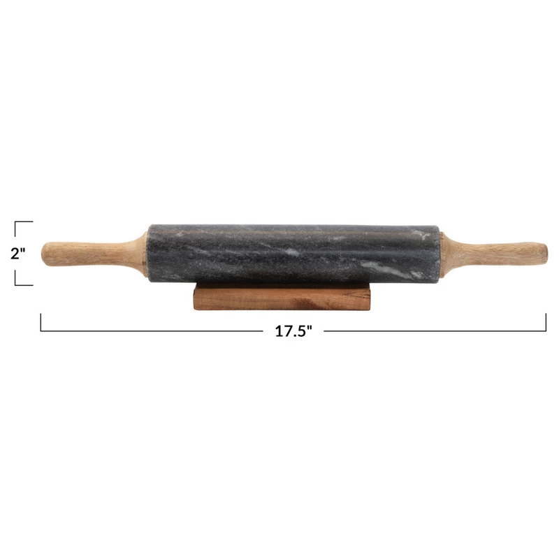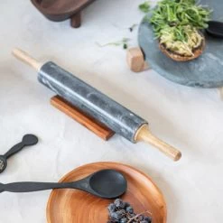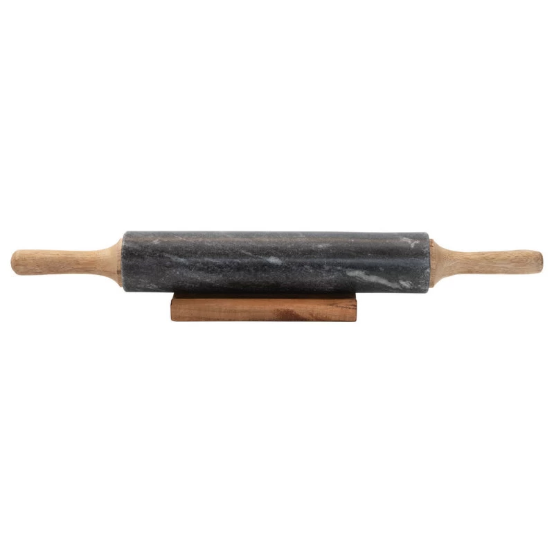 Bloomingville Marble Rolling Pin With Acacia Wood Handles/Holder, Black/Natural, 2-Piece Set