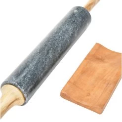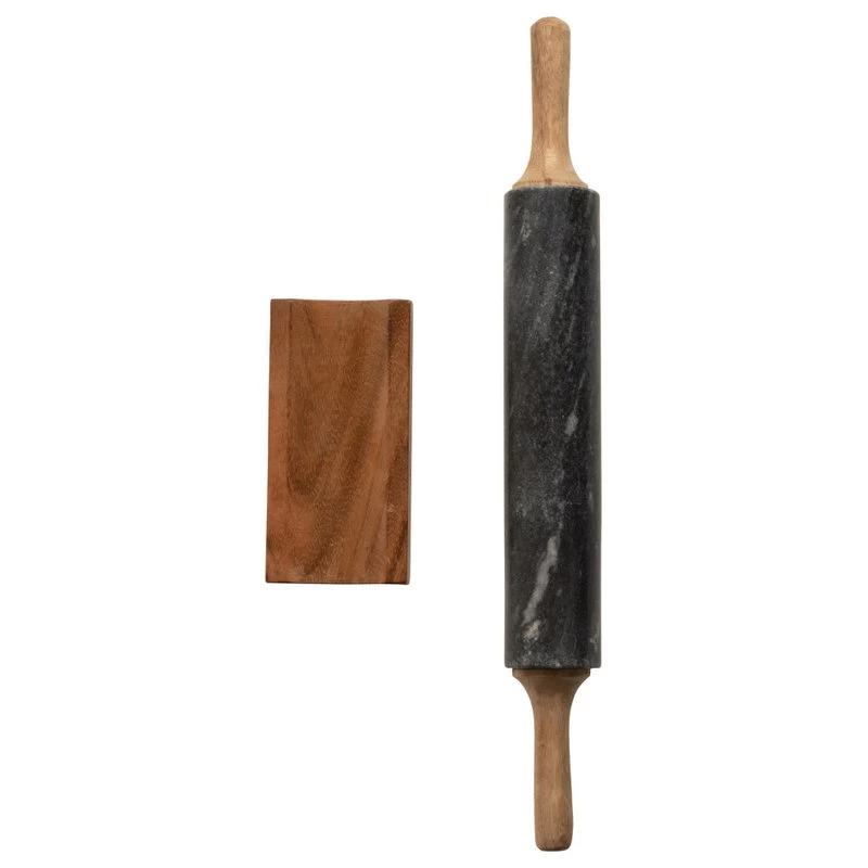 This rolling pin makes baking stylish. Made out of marble and featuring a sleek black finish, this piece also has acacia wood natural colored handles. This comes in a set of 2, and will be sure to bring a pop of style to your next baking day