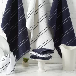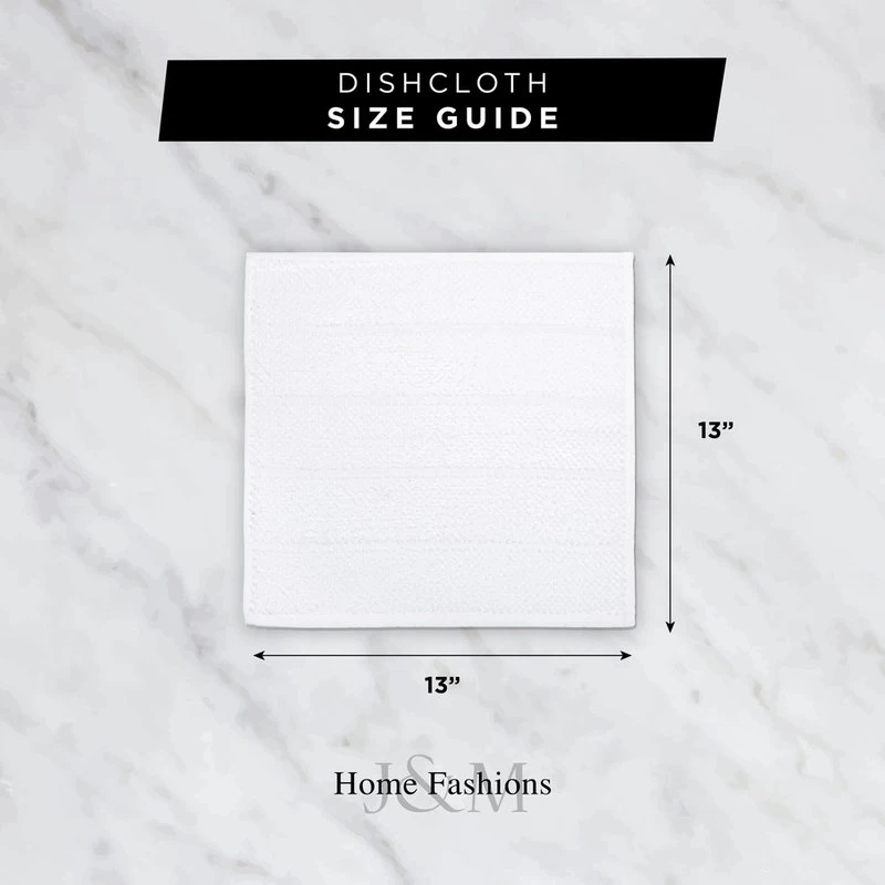 Ideal for everyday household use, this set of eight soft and absorbent 100% cotton terry woven dishcloths and kitchen towels are a favored, classic design. Each dishcloth measures 13 inches by 13 inches and each kitchen towel measures 16 inches by 26 inches. 8Pk set includes both positive and negative colorways providing an enriched look in your kitchen. Hard we a ring and absorbent, these towels will scrub your dishes, mop up your spills and dry wet hands. A perfect addition to the kitchen. Machine wash in cold water with like colors and tumble dry low. Available in 3 other solid colors as well as matching kitchen towels