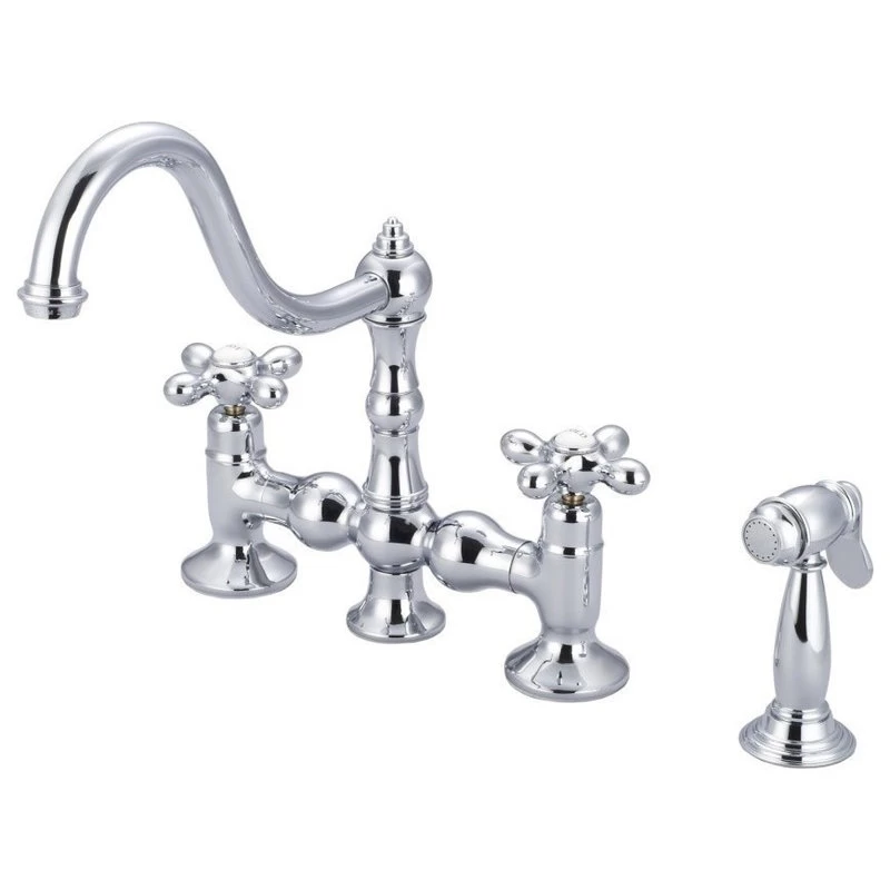 Get a handle on your perfect kitchen design with the Bridge Style 2-Piece Kitchen Faucet Set. With multiple options available, each faucet can be crafted to fit the vision of your dream kitchen. The swivel spout, with two brass handles and a side spray, complement this kitchen faucet’s sleek design and add to the performance of the piece. Create an chic, luxury kitchen that will withstand the test of time.