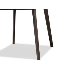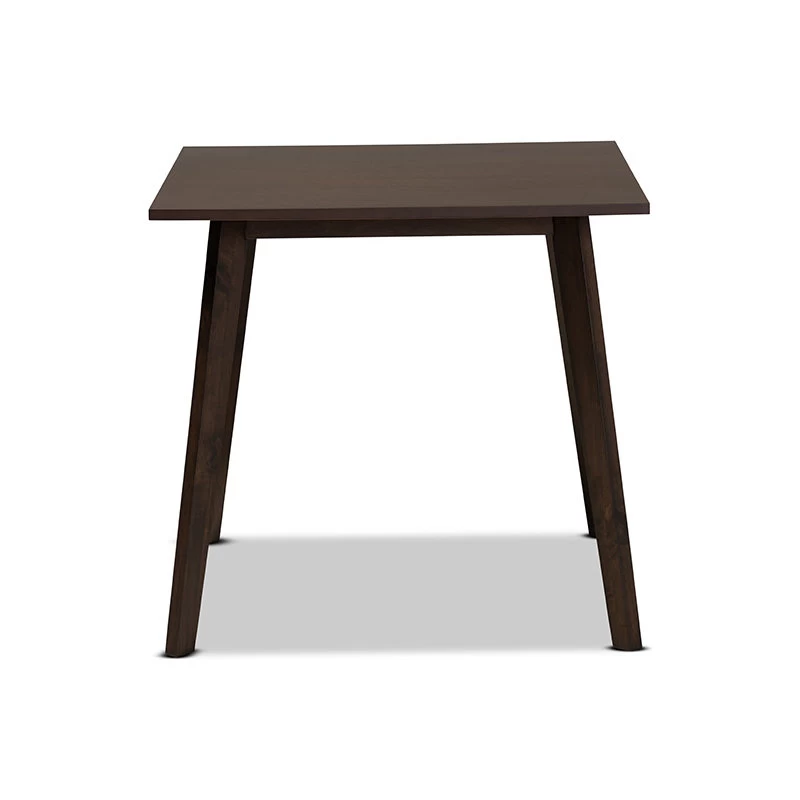 Baxton Studio Britte Mid-Century Modern Dark Oak Brown Finished Square Wood Dining TableBaxton Studio Britte Mid-Century Modern Dark Oak Brown Finished Square Wood Dining Table-A simple, streamlined design makes the Britte dining table an easy addition to any dining space. Constructed from durable rubberwood, the Britte comfortably seats up to four. A dark oak brown finish and square tabletop give the table a clean, modern look, while splayed legs add a dose of mid-century appeal. Its compact size makes it well suited for small nooks and homes. The Britte dining table is made in Malaysia and requires assembly.