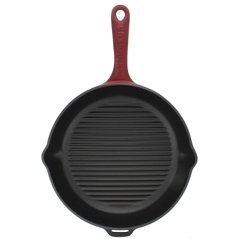Chasseur 10″ Round French Enameled Cast Iron Grill Pan, Red