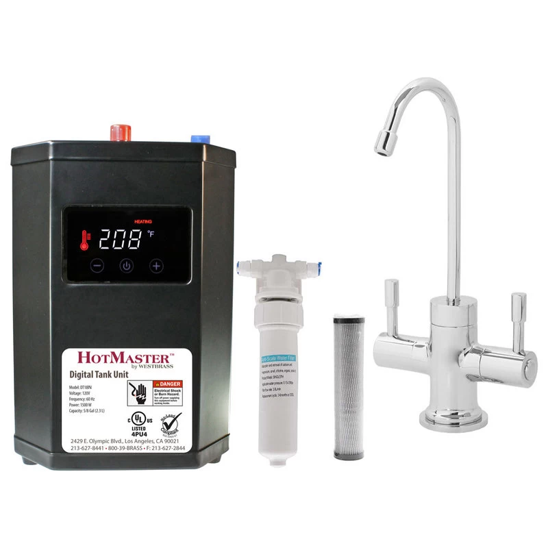 Contemporary 10″ Hot And Cold Water Dispenser With HotMaster DigiHot Digital, Polished Chrome