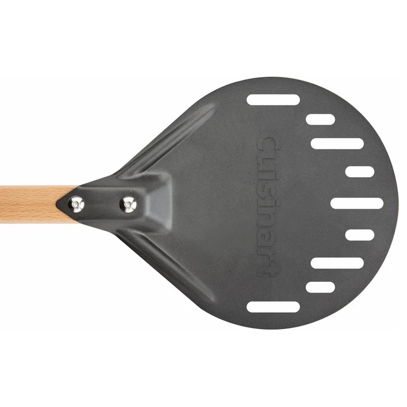 Create mouth-watering, evenly cooked pizzas using the Cuisinart Aluminum Pizza Turning Peel! Easily turn your pizzas while they cook in your oven to ensure an evenly cooked crust every time. The peel features a 7″ wide aluminum, non-stick face to help you effortlessly turn and shift pizzas while they cook. The wooden handle measures 16″ long allowing you to easily reach in to your portable pizza oven and safely handle your pizzas while they cook. The key to a perfectly cooked pizza is even heating, and the Cuisinart Aluminum Pizza Turning Peel will help you achieve just that!