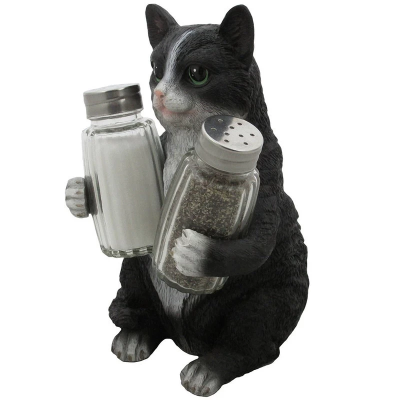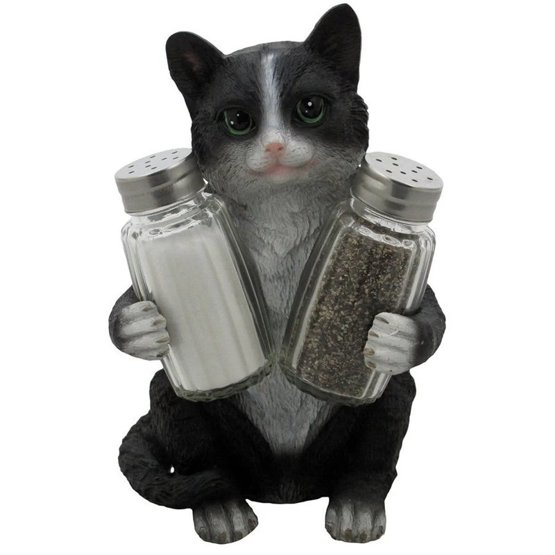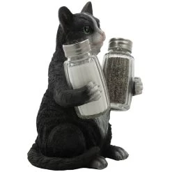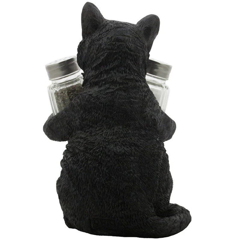Decorative Black And White Kitty Cat Glass Salt And Pepper Shaker 3-Piece Set