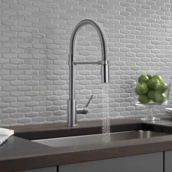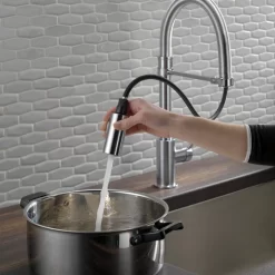 The pull-down spray wand comes free with a gentle tug and gives you total flexibility. The hose extends and retracts without friction points, fed by gravity. As you raise the wand to dock it, the magnet embedded in the spout pulls the wand precisely into place. So, unlike other pull-downs that tend to droop over time, MagnaTite keeps your pull-down faucet looking picture-perfect. Delta’s exclusive DIAMOND Seal Technology uses a valve with a tough diamond coating. InnoFlex PEX waterways keep water inside the faucet out of contact with potential metal contaminants. This powerful combination brings you a faucet built to last up to five million uses. Only Delta faucets are equipped with Touch-Clean soft, rubber nubbins that allow you to easily wipe away calcium and lime build-up with the touch of a finger.