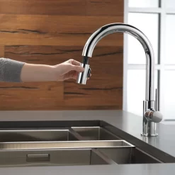 Delta MagnaTite Docking uses a powerful integrated magnet to pull your faucet spray wand precisely into place and hold it there so it stays docked when not in use. Delta faucets with DIAMOND Seal Technology perform like new for life with a patented design which reduces leak points, is less hassle to install and lasts twice as long as the industry standard*. Kitchen faucets with Touch-Clean Spray Holes allow you to easily wipe away calcium and lime build-up with the touch of a finger. You can install with confidence, knowing that Delta faucets are backed by our Lifetime Limited Warranty. *Industry standard is based on ASME A112.18.1 of 500,000 cycles.