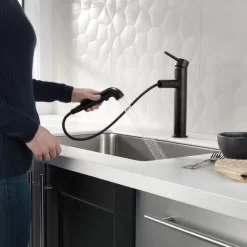Delta faucets with DIAMOND Seal Technology perform like new for life with a patented design which reduces leak points, is less hassle to install and lasts twice as long as the industry standard*. Kitchen faucets with Touch-Clean Spray Holes allow you to easily wipe away calcium and lime build-up with the touch of a finger. You can install with confidence, knowing that Delta faucets are backed by our Lifetime Limited Warranty. *Industry standard is based on ASME A112.18.1 of 500,000 cycles.
