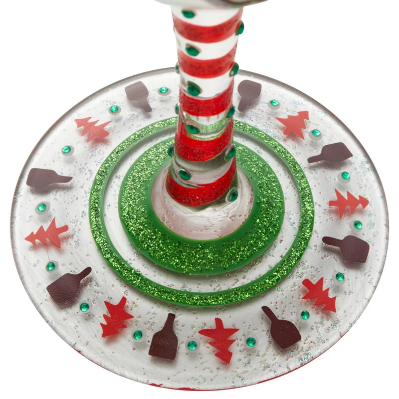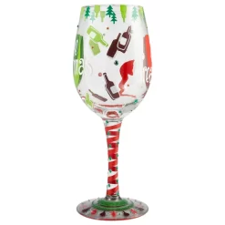 This exquisite glass by Lolita will have you feeling and drinking the holiday spirit. With green and red designs, trees and sparkles, you’ll be Dreaming of a Wine Christmas. With ribbon running down its stem, the glass is a present.