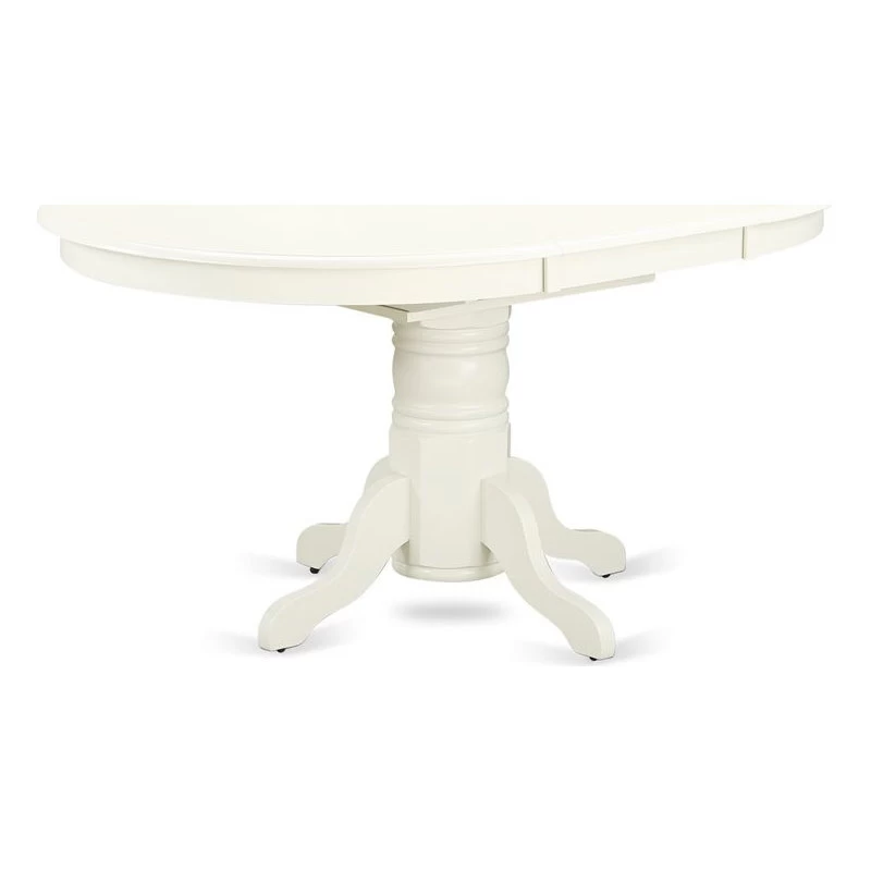 - Its round dining table top and gorgeous wooden legs color is linen white finish
