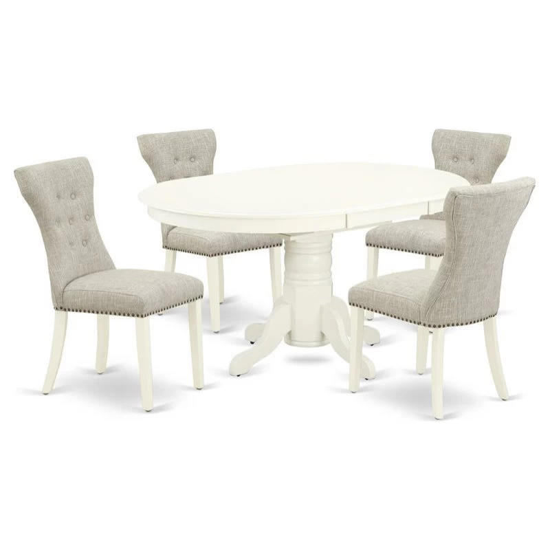 East West Furniture 5-Piece dining kitchen table set including 4 parson chairs and a round luxurious butterfly leaf dinette table will improve the beauty of your dining room or kitchen areas. This dining table set is manufactured from solid Asian wood, known as Rubber Wood, which is rugged enough to withstand years of use. It also has an ergonomic design, which is very comfortable. Single butterfly leaf wood dining table with 4 modern dining chairs is in Linen White finish. This kitchen table and chairs set would add elegance and attractiveness to your kitchen area or dining room. This breakfast table is adaptable and comfortable. This butterfly leaf wood kitchen table features a compact design perfect for small areas. The dining chair seat is made from soft Linen Fabric cushion, with Solid Rubber wood legs and stylish soft Linen Fabric backrest with Asian wood body, soft cushion, and stylish button tufted backrest design to make you more comfortable. Our dining set adds some modern beauty to your home. Upholstered dining chairs and a butterfly leaf dinner table give lots of space for your family or friends. The simplistic and classy design is accentuated by a glossy Linen White finish. You will certainly enjoy this attractive kitchen dining table set. It’s quick to construct the parsons chairs and wood kitchen table with a basic tool. No additional tools are required. Easy-to-follow instructions, tools, and hardware are included. With the help of a damp cloth, you will clean your dusty quickly. Buy our products in complete confidence, because your satisfaction is our #1 priority. Feel free to contact us, we are always here for you.