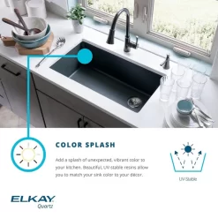 Elkay Quartz Classic sinks have a smooth surface and a visible depth to their structure. They’re crafted from natural quartz and come in a range of UV-stable neutral colors in shades of black, brown, gray and white that allow you to add an unexpected pop of color to your space. Whether it’s a kitchen sink or a prep, bar or laundry sink, this composite sink has the durability you need to take on tough tasks. Available in ADA depths.