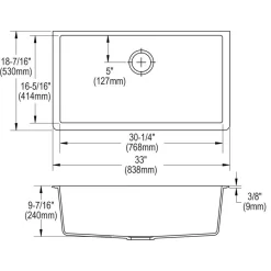 - DRAIN OPENING: Sink drain opening measures 3-1/2″.