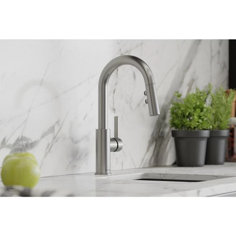 - PULL-DOWN SPRAY HEAD: Provides extra reach for additional cleaning and rinsing coverage.