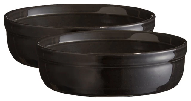 Make all your favorite desserts and souffles in these creme brulee dishes from Emile Henry. They are made with heat resistant ceramic that is safe to use in the oven, microwave and can even withstand the temperatures of a blowtorch for caramelizing the sugar on your creme brulee. It is resistant to mechanical shocks and fading as well. These dishes are shallow and stackable for easy storage. Backed by a manufacturer’s ten year warranty, this set is dishwasher safe to make clean up a breeze.