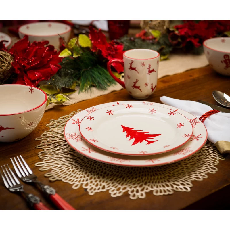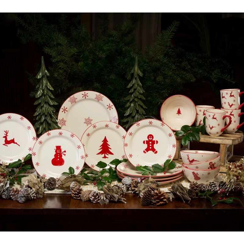 Bring the warmth and joy of the holiday season to your dinner table with the cheerful patterns of the Winterfest collection by Euro Ceramica. With four mix-and-match, hand stamped designs and a wide assortments of accessory options available (each sold separately, Winterfest will meet all your dining and serving needs; perfect for any occasion from family dinners to holiday parties.