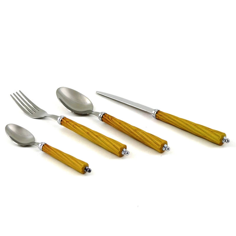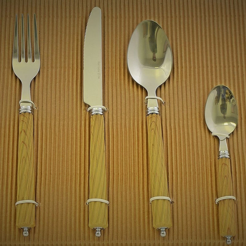 Flaware Stainless Steel 24- Piece Set With Light Wood Design Finish Handles