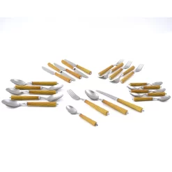 Elegant, decorative and functional is what describes this 24-Piece Flatware Set. It has light wood color finish on its handles. This attractive set is for casual use and is recommended for hand wash only.