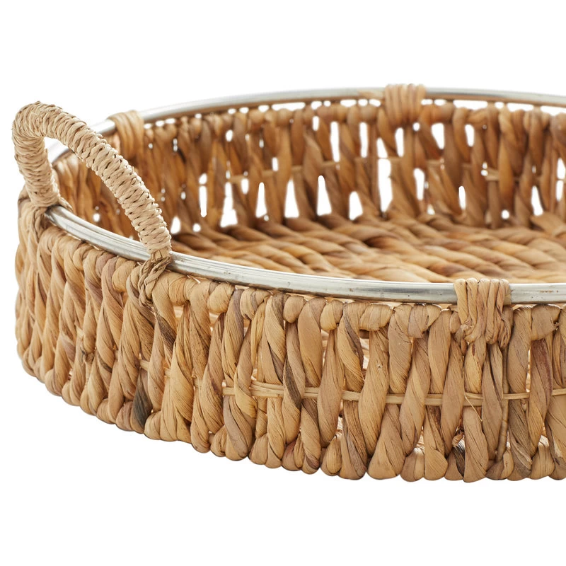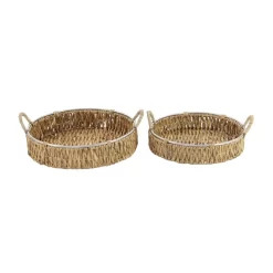 These weaved serving trays are great decorative trays for shelves, coffee tables, dining tables, drawers, cabinets, and the bedroom. This item ships in 1 carton. Please note that this item is for decorative purpose only and is not food safe. Nesting baskets for easy storage. Dried plant material tray makes a great gift for any occasion. Due to the handmade nature of this item, no two will be alike, there will be slight differences in shape, size, and color. Suitable for indoor use only. Made in Vietnam. This tray comes as a set of 2. Coastal style.