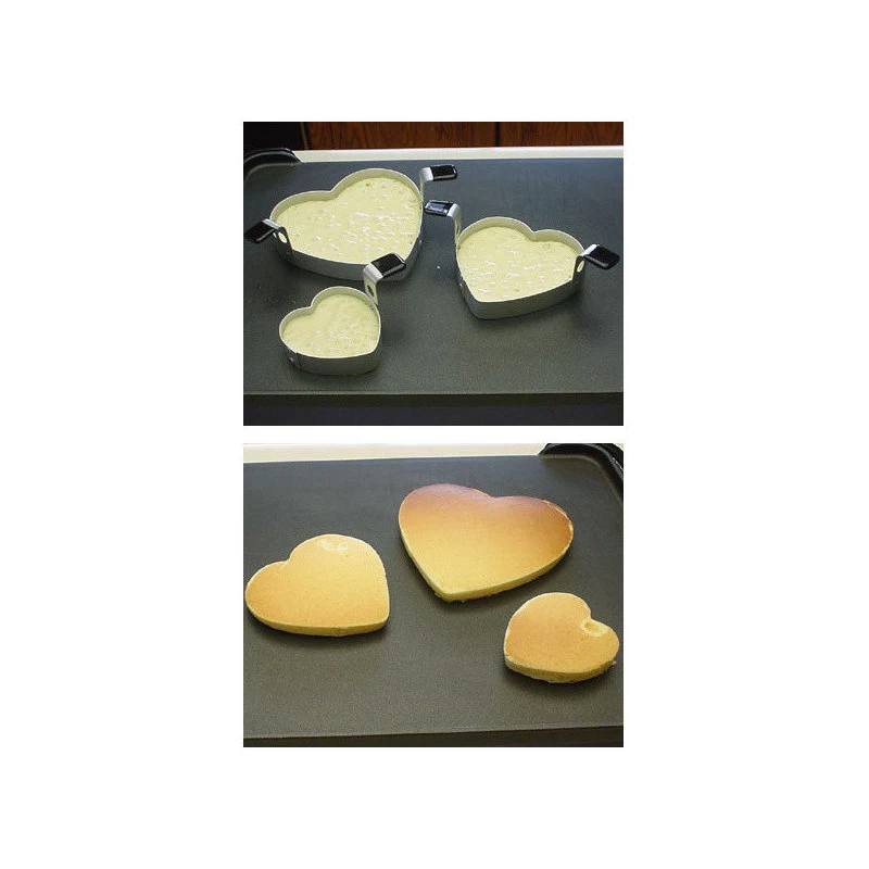 Hearts Shape-Its Food Forms are manufactured from an aircraft aluminum alloy that has been specially processed to provide years of durable use without losing its shape. These forms work great for shaping any kind of shapeable food (i.e. pancakes, cakes, cookies, gelatin, ice cream, marshmallow treats, brownies and more.) Each form is easy to clean, dishwasher safe, oven safe to 350 degrees and will not rust. All Shape-Its Forms are equipped with folding handles to make storing easy.