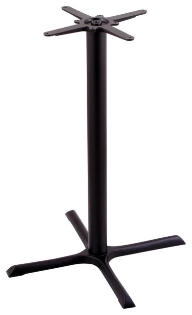 Holland Bar Stool’s 211 table base is sure to compliment any decor. The X style base is finished with a durable, long lasting, black wrinkle powder coat. Cast iron foot and steel column offer superior stability. Table base can accomodate a variety of different size tops and comes standard with adjustable levelers. Base is commercial quality and will fit well in both residential and commerial applications. **Table Base ONLY. Does Not Include Table Top or Mounting Hardware**