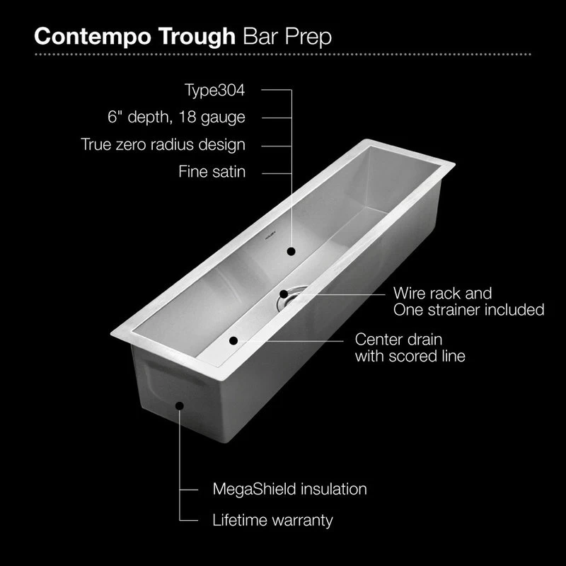 - Houzer Stainless Steel kitchen sink Undermount 18 gauge Contempo Trough Bar/ Prep Bowl.
